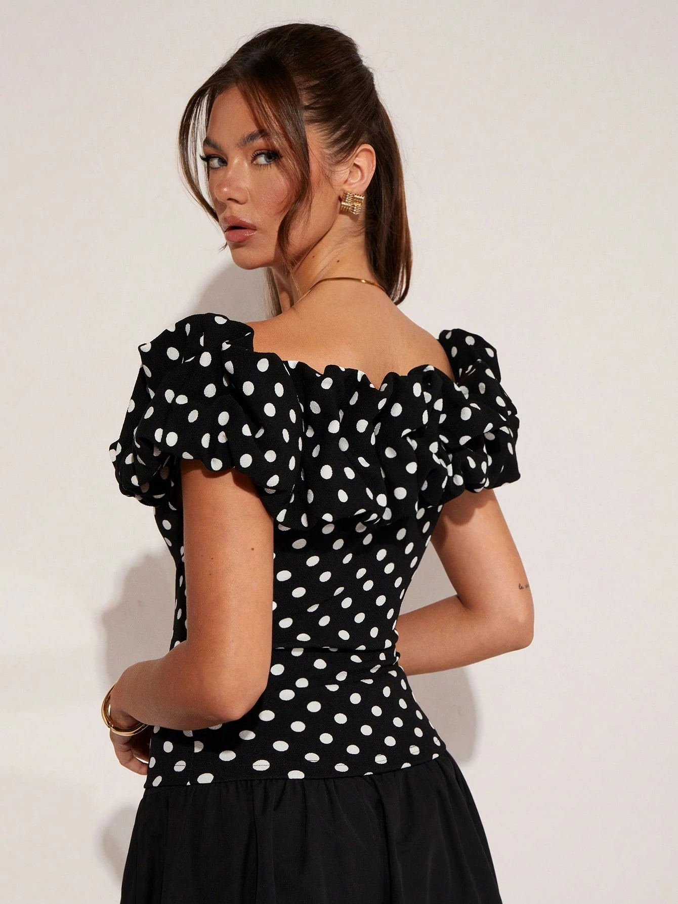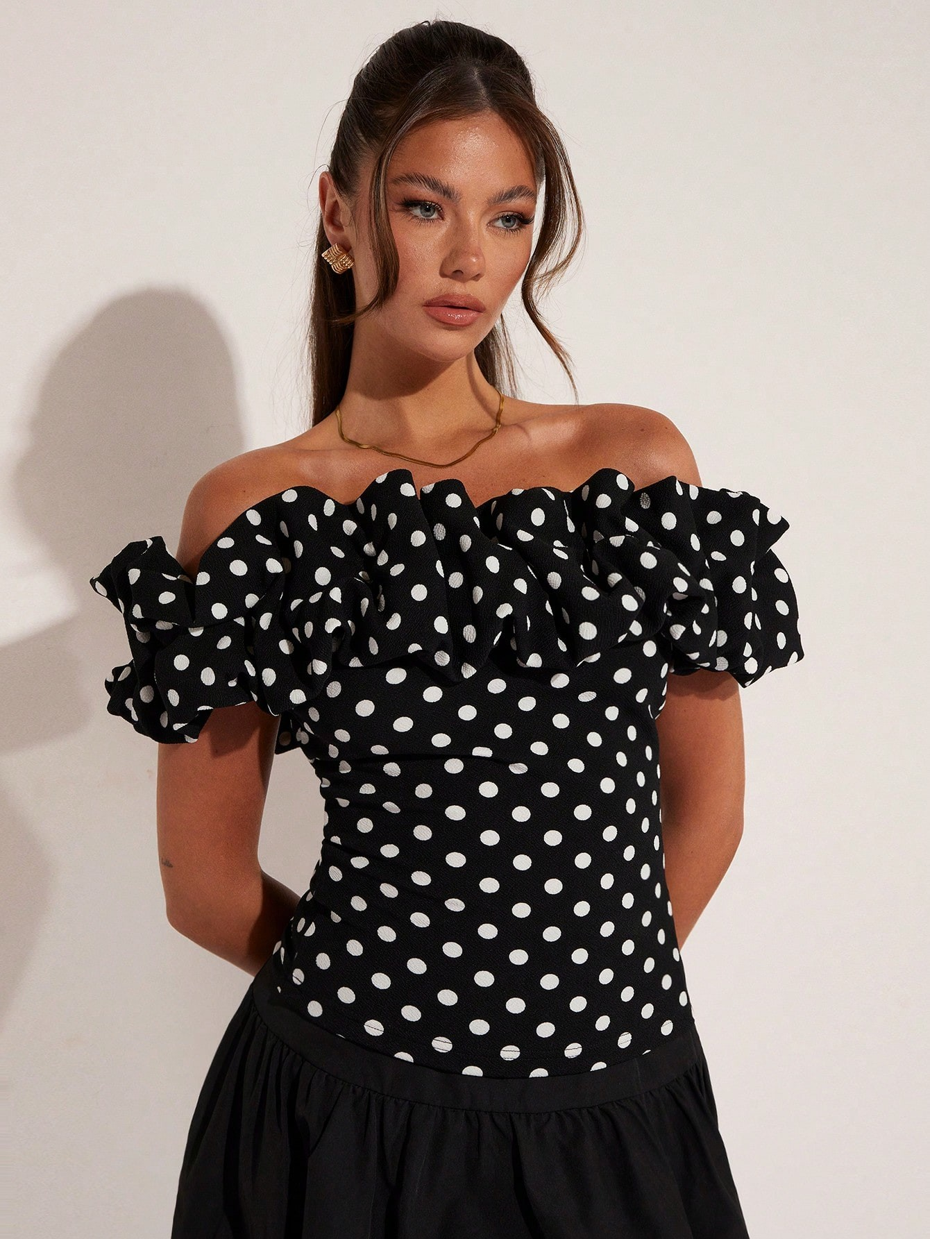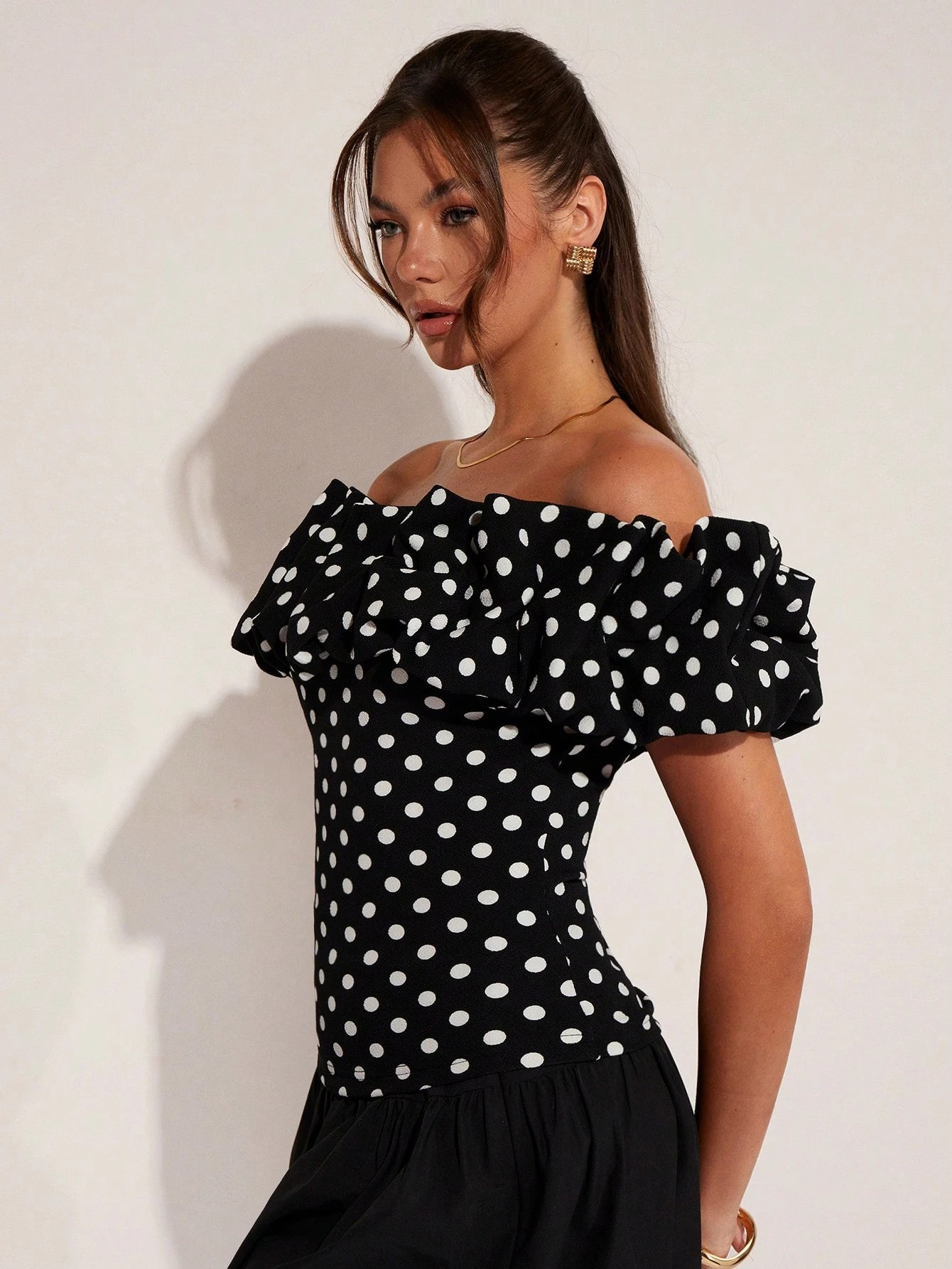 Top élégant à épaules dénudées à pois pour femmes